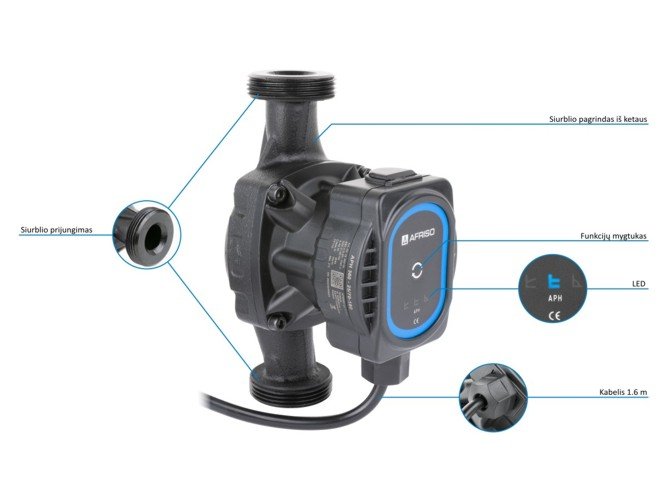 Cirkuliacinis siurblys APH 360 turi 9 nustatytus darbo režimus - 3 pastovaus greičio, 3 proporcinio slėgio ir 3 pastovaus slėgio. Valdymo skydelyje esantys šviesos diodai indikuoja pasirinktą darbo režimą. Įrenginys pasižymi aukštu energijos efektyvumu - EEI ≤ 0,20. Siurblio pagrindas pagamintas iš ketaus, todėl yra tvirtas ir ilgaamžis.