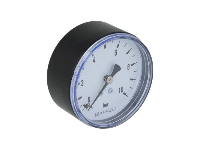 Manometras plastikiniame korpuse, skirtas dujinei ir skystinei terpei, kuri nėra klampi, nekristalizuojasi ir nėra agresyvi vario junginiams bei EPDM.