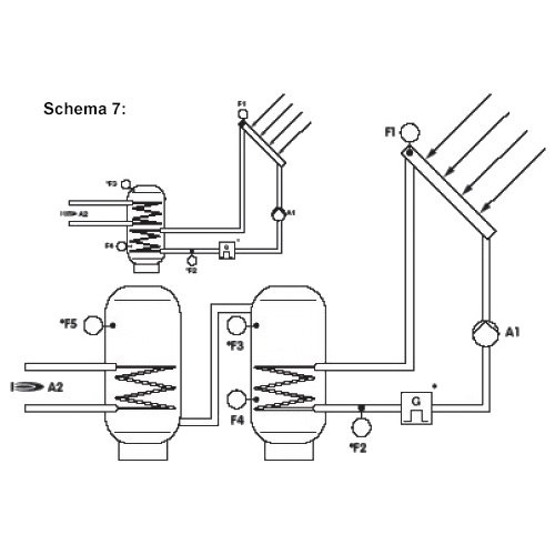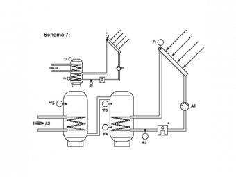 Schema 7: Saulės sistema su pašildymo funkcija
