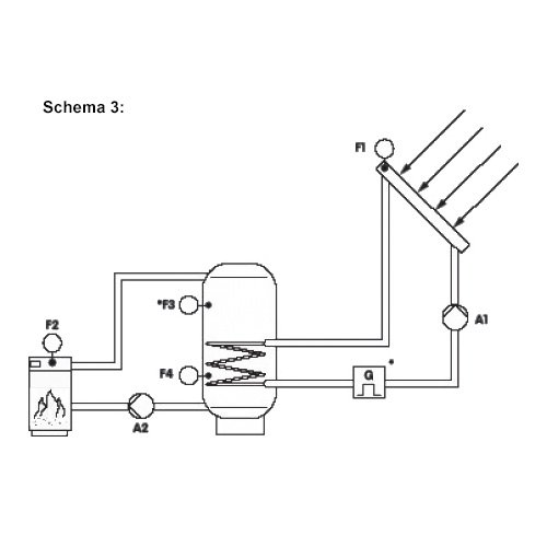 Schema 3: Kieto kuro katilas su saulės sistema