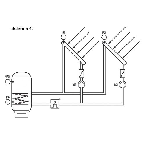 Schema 4: Saulės sistema su dviem kolektoriais