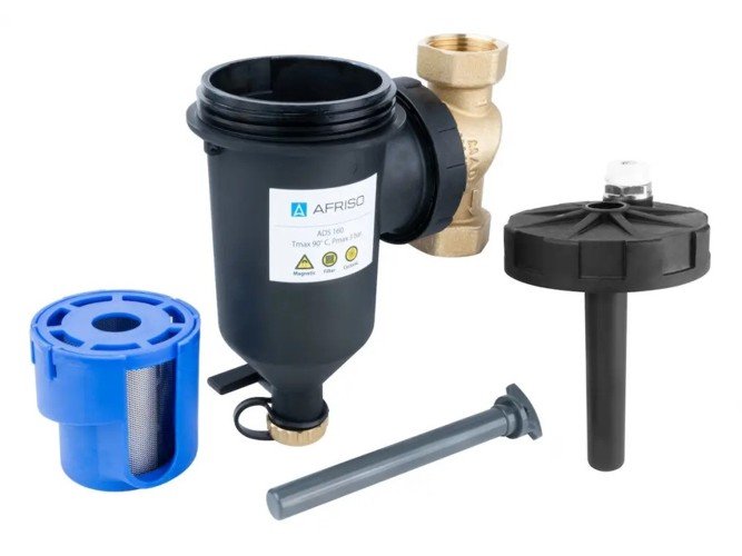 Magnetinis purvo separatorius ADS 160 su pasukama G 1" jungtimi, skirtas naudojimui šildymo ir vėsinimo sistemose. Filtras montuojamas prieš šilumos šaltinį grįžtamoje iš sistemos linijoje. Dviguba mechaninė ir magnetinė filtravimo sistema apsaugo sistemą ir šilumos šaltinį nuo nešvarumų.